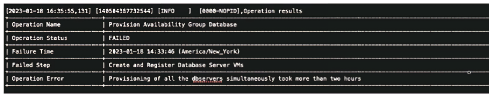 An administrator attempts to provision their first clustered database environment with NDB. The operation fails with the Operation Error shown in the exhibit. Which database engine type was being deployed during this operation?