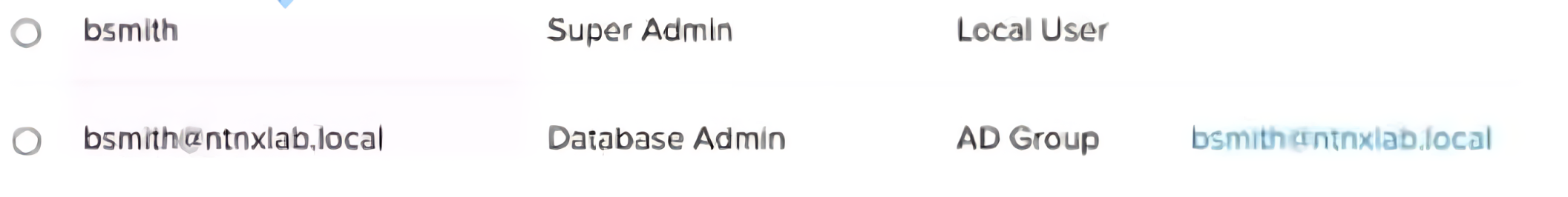 An administrator, whose accounts are shown in the exhibit, is trying to add a new database admin as a local user to NDB, but is unable to complete the task. What is the most likely reason for the issue?