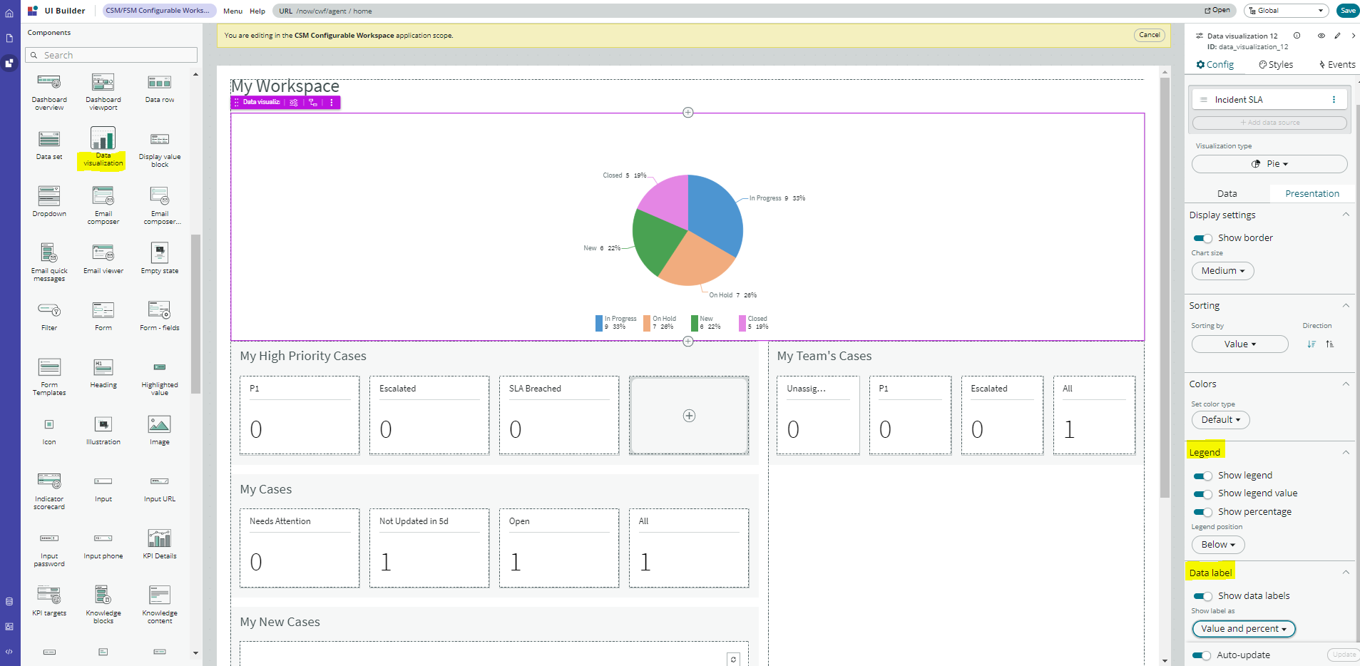 Screenshot: Adding a Data Visualisation in the UI Builder for a workspace
