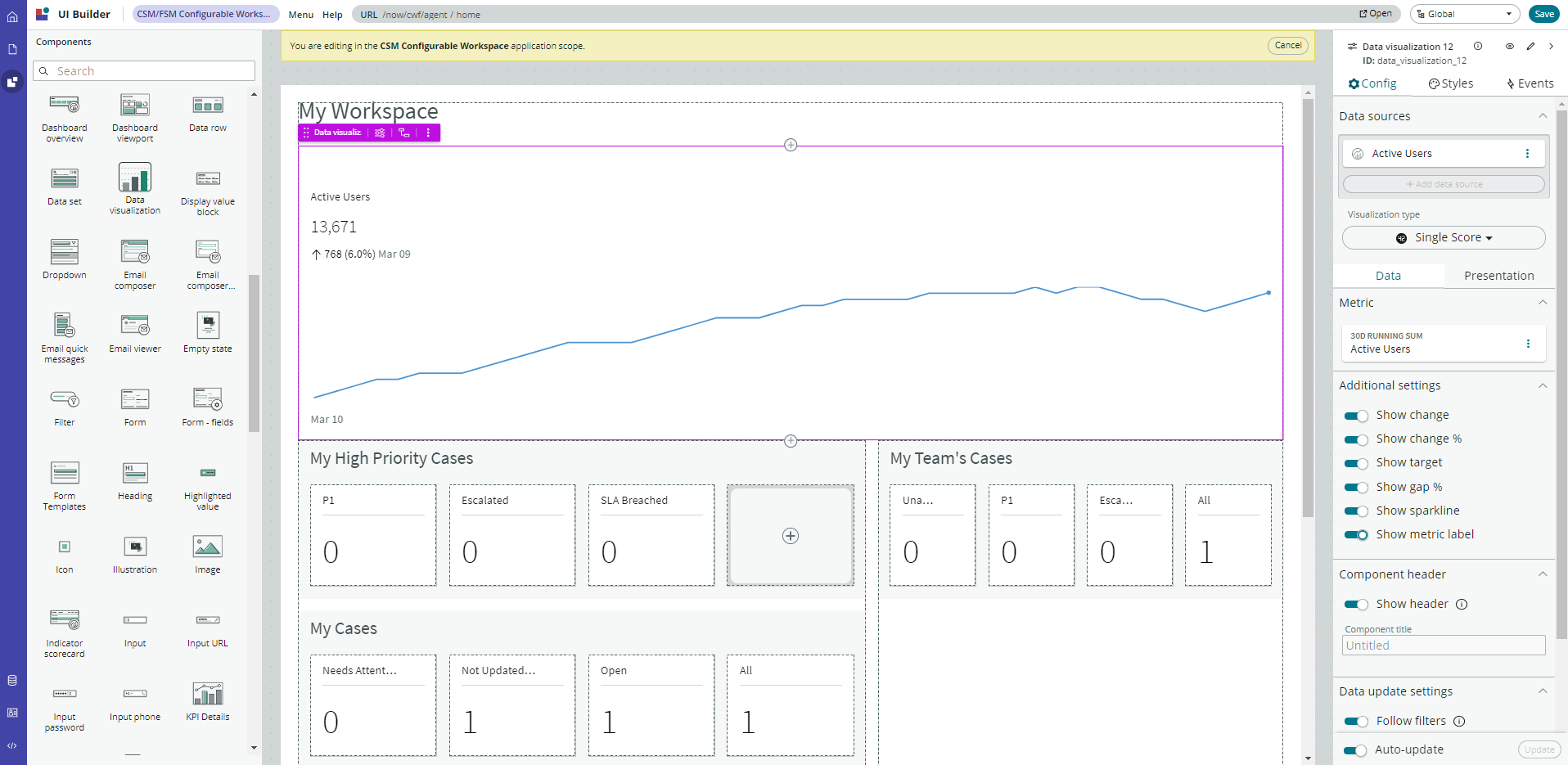 As an admin, you can configure a workspace to use Performance Analytics and Reporting visualisations. These visualisations show score, trend, proportional, and comparison data.