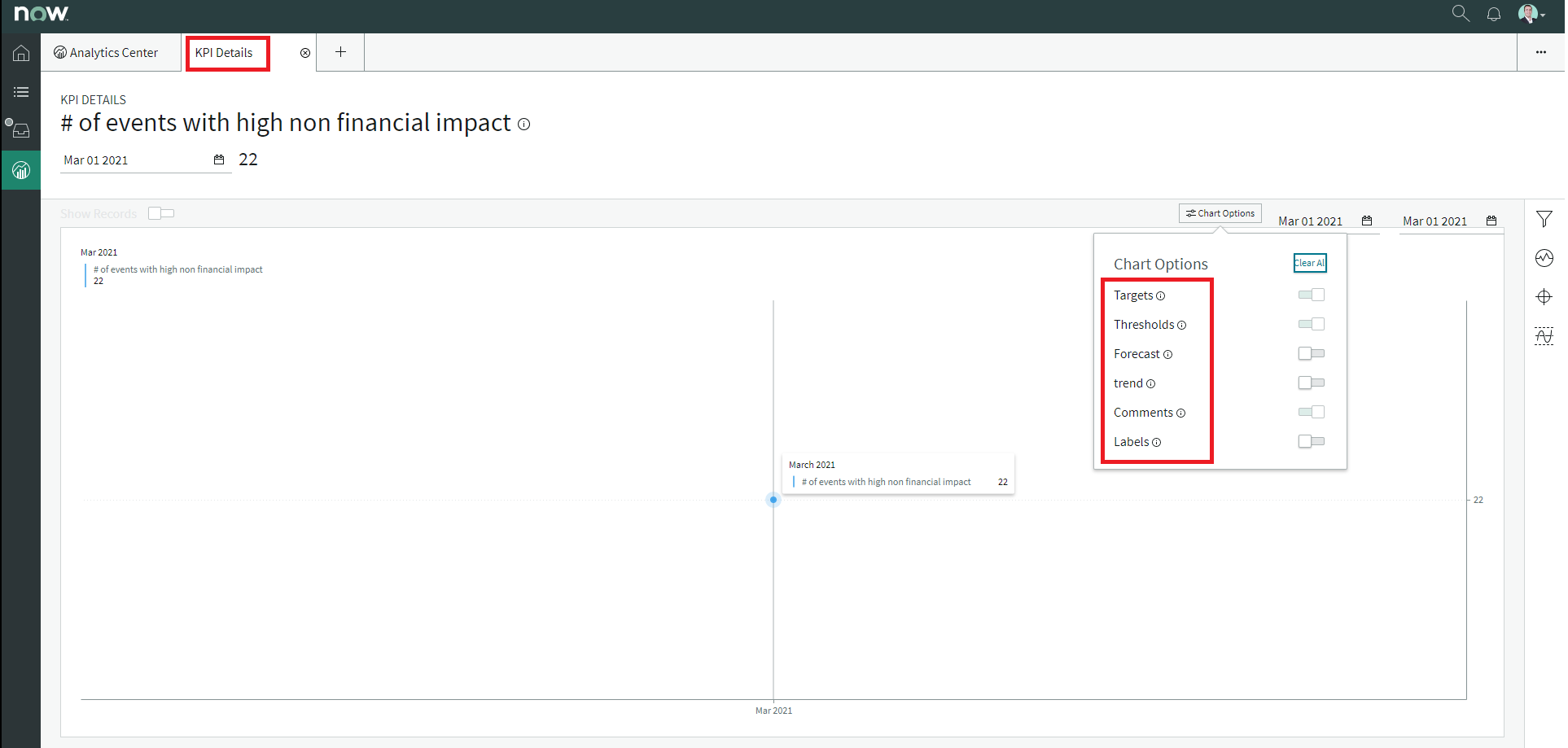 You can adjust targets, trendlines, forecasting, and comments in KPI Details.