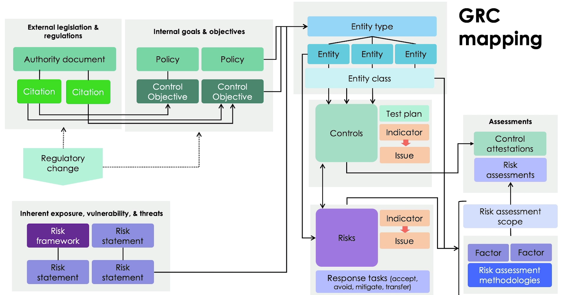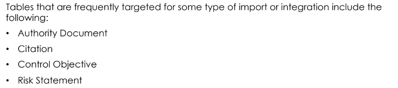 Entity data is often already present in CMDB, org models, or HR systems, so it is typically integrated or referenced rather than imported for GRC purposes.
